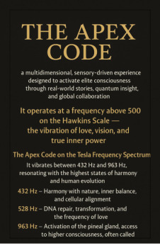 The Role of Music & Sound A Sonic Gateway into Altered States Music is not background noise in The Apex Code - It is a conscious tool for transformation. Each sound is crafted to move you. Not just emotionally, but neurologically. We use ancient instruments like crystal bowls, Tibetan gongs, didgeridoos, and monochords, all tuned to healing frequencies between 432 Hz and 963 Hz - the same spectrum used in sacred temples, advanced meditation, and energy medicine. These sounds are designed to guide the audience into altered states of consciousness, unlocking deeper access to intuition, memory, and quantum awareness. Brainwave Activation Different frequencies affect different parts of the brain. The Apex Code is engineered to stimulate three powerful states: Alpha Waves (8–12 Hz) Calm, relaxed awareness. The state of focused flow, ideal for learning, reflection, and creativity. Theta Waves (4–8 Hz) Deep meditation and subconscious access. The gateway to intuition, emotional healing, and dream-like visualization.